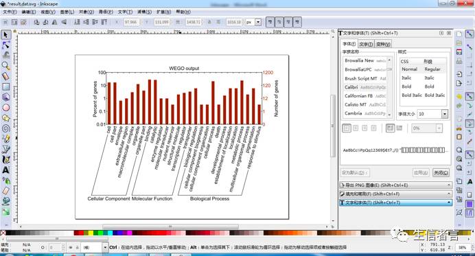 单击“Number of genes”和“WEGO output”,单击右键选择“删除”,接着框选图像右边的数字和标尺格以及图像上角的标尺格单击右键选择“删除”,结果如下图所示,此时图像显得简单直观: