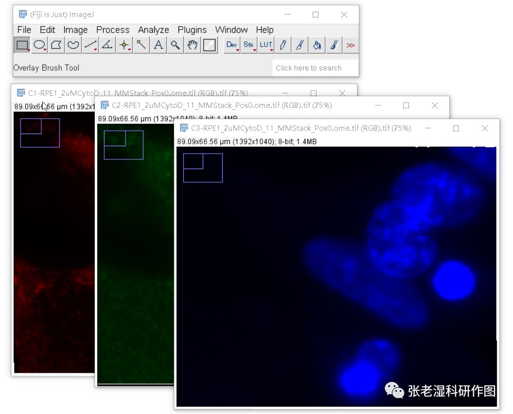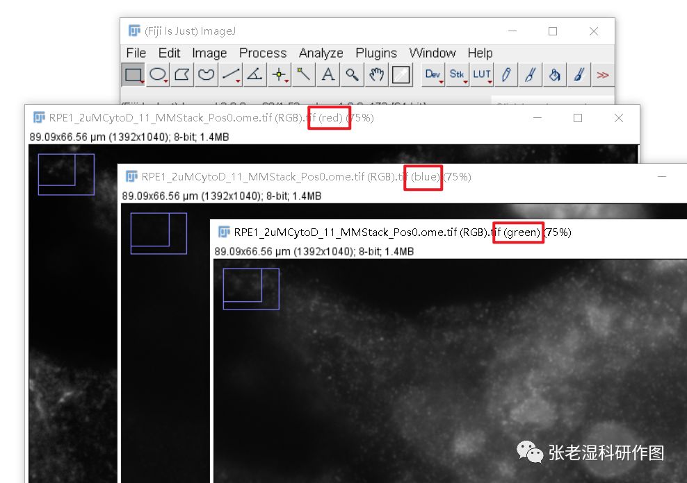 荧光图片的拆分和merge应该是科研图片处理中非常基础的一个操作了,Photoshop和Image J等软件都可以完成。这里演示下Image J如何快速拆分和合并。