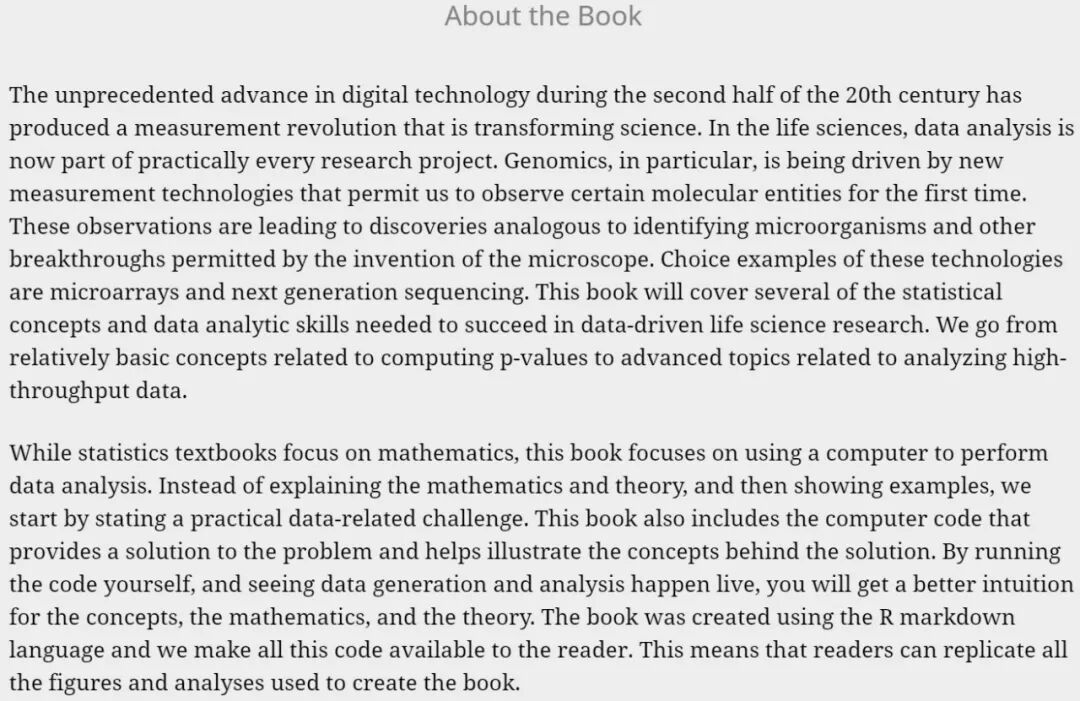 电子书:https://leanpub.com/dataanalysisforthelifesciences/ 方便下载各版本在移动端阅读