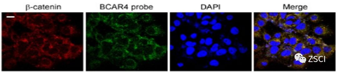 针对lncRNA BCAR4设计荧光探针,检测BCAR4定位。