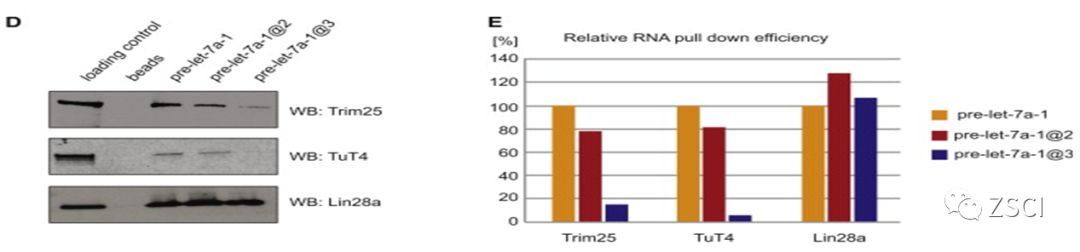生物素结合的pre-miR-let7a-1将细胞内可与之结合的蛋白质拉下来,针对猜测的蛋白质进行WB验证。