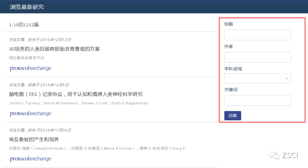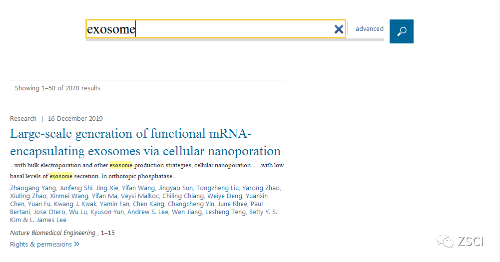 可以根据关键词对Protocol进行检索,比如搜索外泌体exosome,有2070条检索结果。也支持高级检索。
