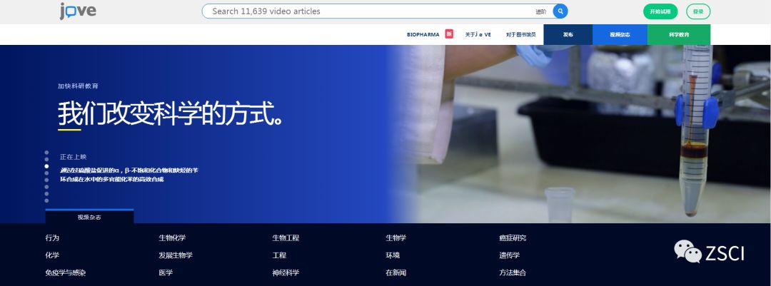 JoVE视频实验期刊(Journal of Visualized Experiments)是全球首例视频实验期刊,于2006 年10 月正式创刊,以视频方式展现生物学、医学、化学、物理等学科研究过程和成果的期刊;同时也是世界首个100%经同行评审,并被PubMed/MEDLINE、Scopus、ChemAbstracts 和SciFinder 等收录索引的视频数据库。