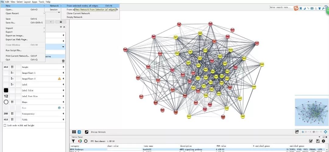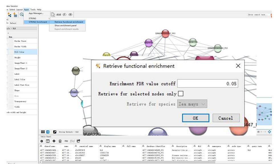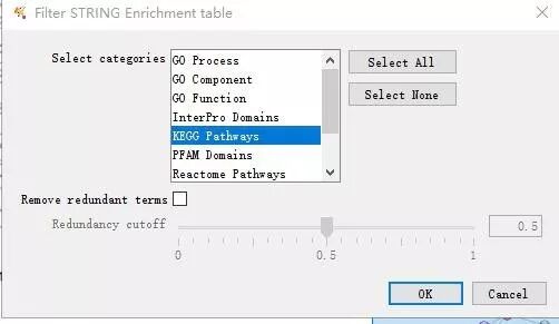 7. 富集分析——使用STRING Enrichment进行富集分析。选择STRING Enrichment下第一项。 默认Pvalue为0.05。