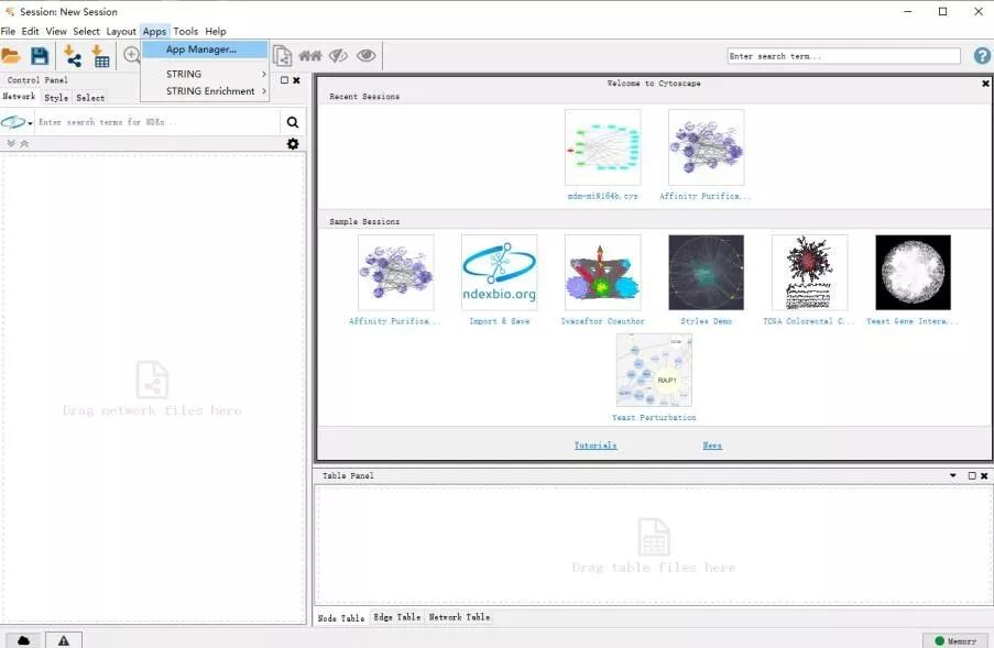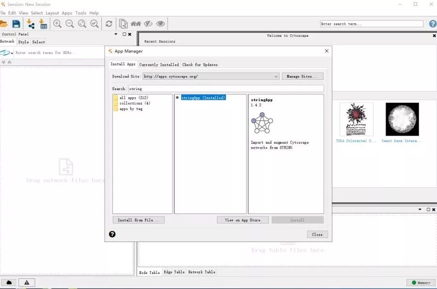 1. 打开cytoscape,点击Apps,选择App Manage,选择STRING APP进行安装。