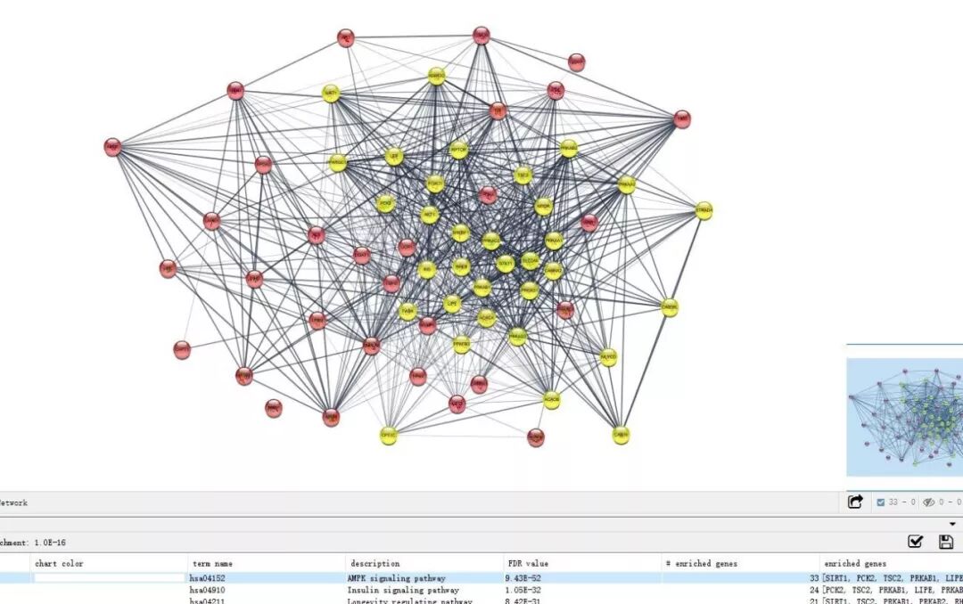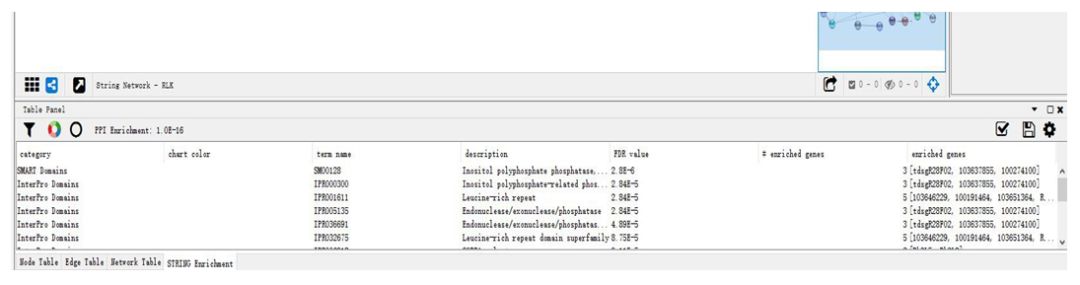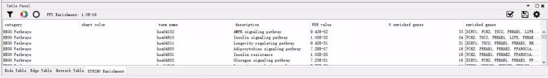 8. 富集结果在STRING Enrichment中展示。包括多种类别,通路,相关描述及富集结果。
