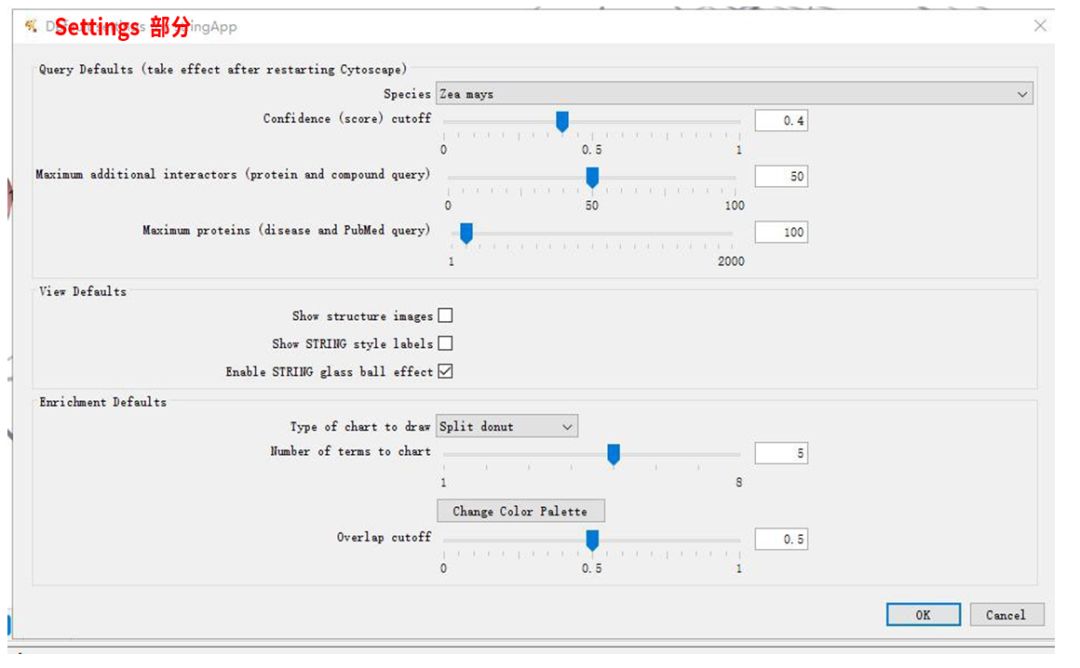 6. 关于网络图中内容的更改,在Apps–STRING下修改。