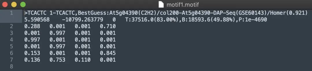 8motiffile <- read.table("/Users/hejieqiang/Desktop/motif1.motif")