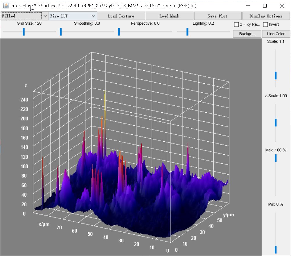 可以把像素的灰阶信息可视化出来:Image J-Type-8-bit把图片转成8-bit(或者其他单通道图片模式)之后,Analyze-Surface Plot,获得一张像素灰阶值的三维效果图: