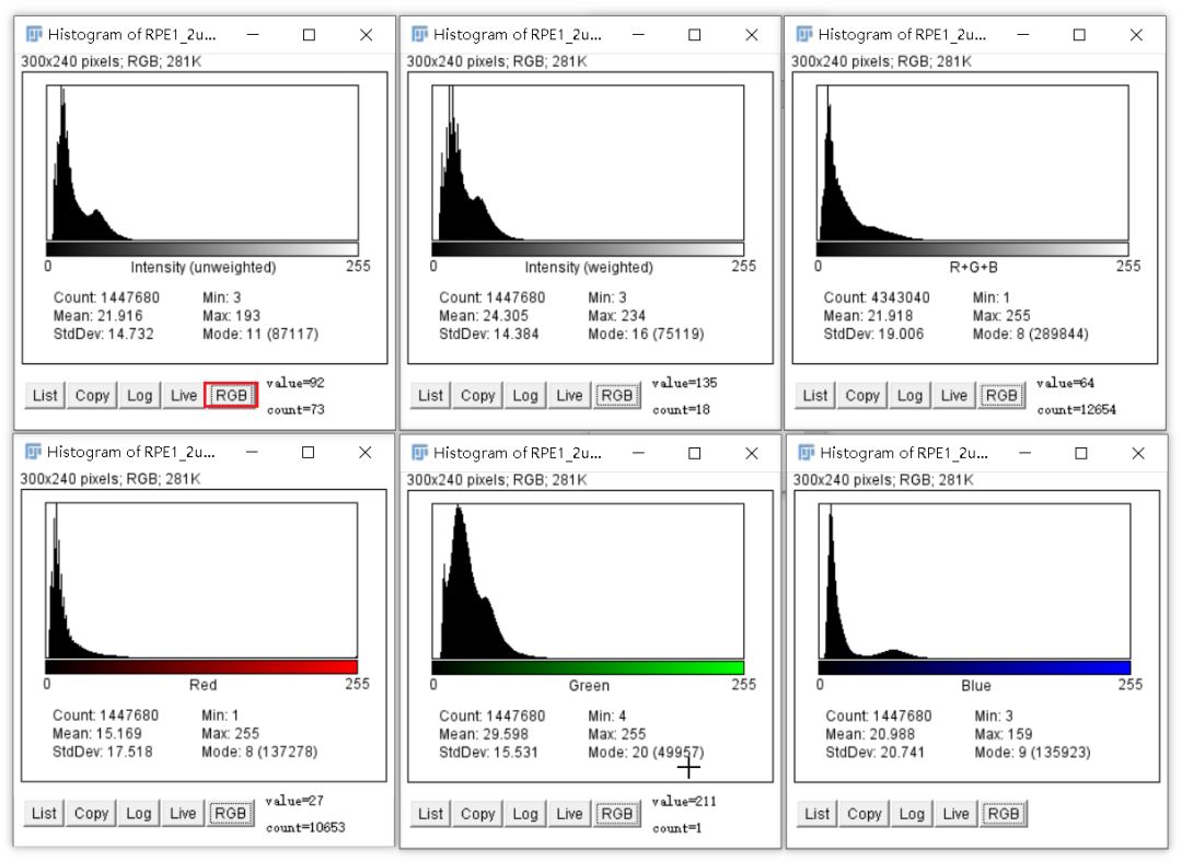 3、图片直方图:Analyze-Histogram,快捷键H或Ctrl+H。