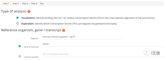 接下来,这篇文章就介绍一个免费的在线预测转录因子结合位点的工具ConTra V3 (http://bioit2.irc.ugent.be/contra/v3/#/step/1)。