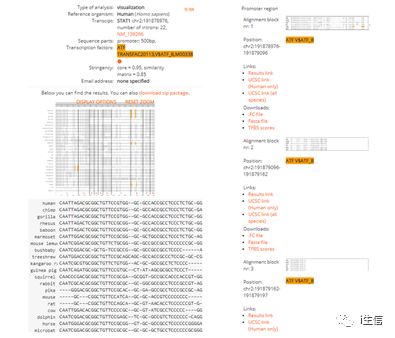 在这种分析模式下,ConTra V3可以根据指定的结合概率排序,列举出所有可能的结合转录因子。具体的算法综合了结合位点的数量等多因素,在这里就不赘述。目前可供分析的种类不仅包括Homo sapiens, 还包括大小鼠等一系列研究对象。