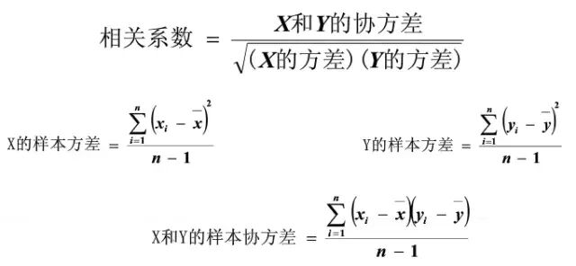 X和Y两个变量的相关系数计算公式: