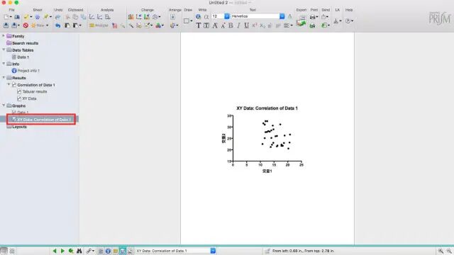 7. Graphs下的Correlation of Data 1 即为输入两变量的散点图(scatter plot)