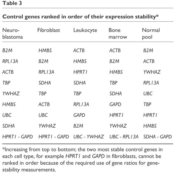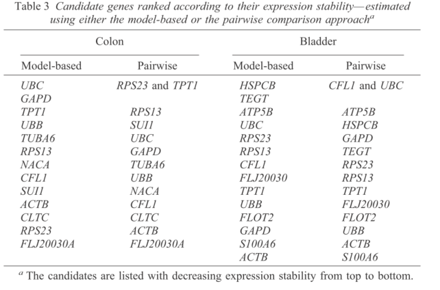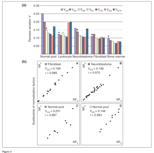 Jo Vandesompele, Katleen De Preter, Filip Pattyn et al. (2002). Accurate normalization of real-time quantitative RT-PCR data by geometric averaging of multiple internal control genes. Genome Biology 2002. 3(7):research0034.1-0034.11. http://genomebiology.com/2002/3/7/research/0034/