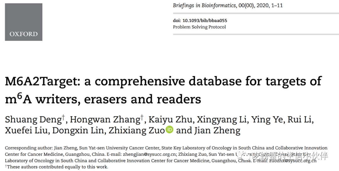 Deng S, Zhang H, Zhu K, et al. M6A2Target: a comprehensive database for targets of m6A writers, erasers, and readers[J]. Brief Bioinform, 2020.